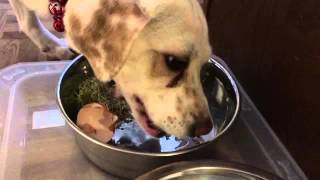 For some reason nala loves to roll her food in the grass when i feed outside. Please give this a video thumbs up if you like the slurping.